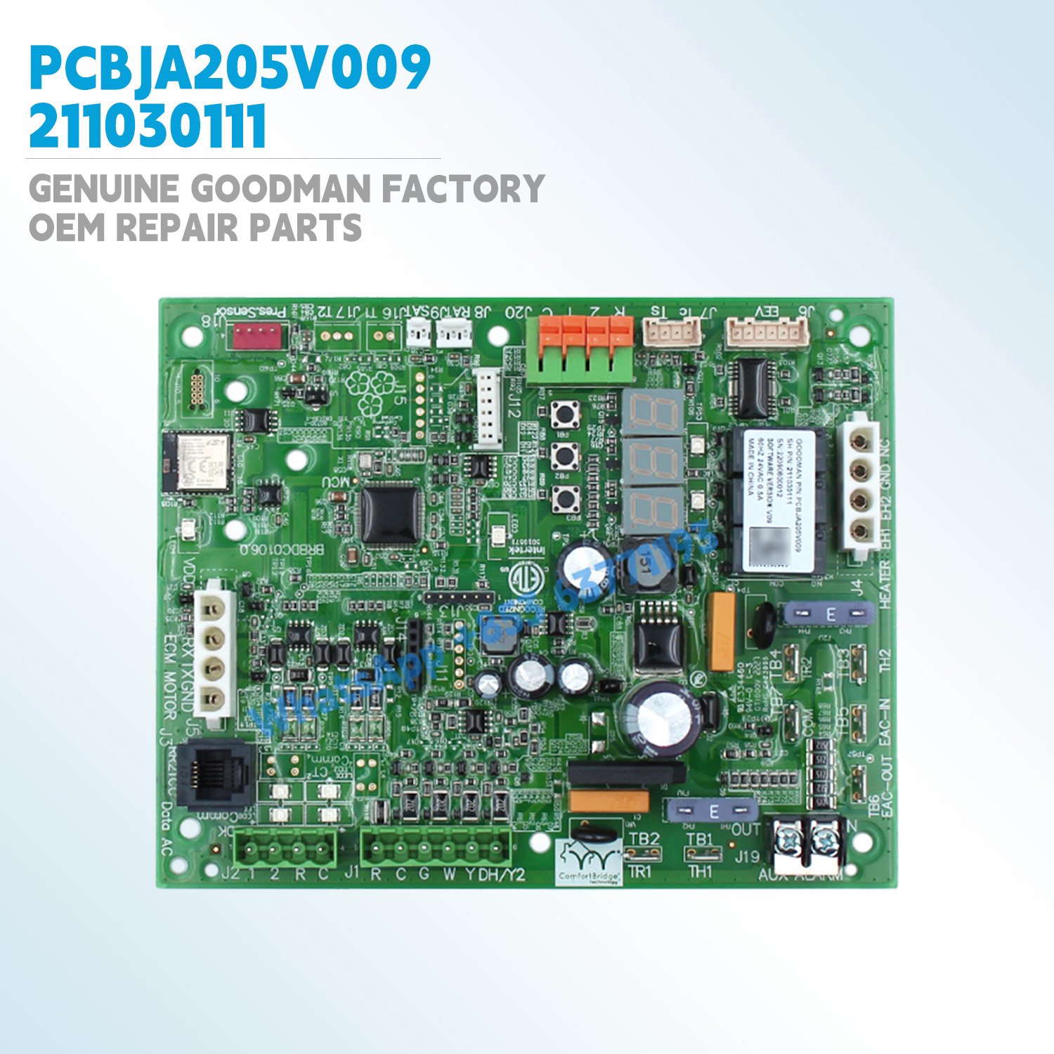 Electric: No Substances of High Concern: None Model: PCBJA205V009 Type: Original OEM Repair Part Application Area: Commercial Certification: RoHS Origin: Mainland China Type: Air Conditioning Parts Brand: Goodman Midea: 211030111 PCBJA205V009 Quality: Brand New Packaging: Cardboard Box Country of Origin: China Application: Outdoor Unit Software Version: V09 Specifications: 60Hz 24VAC 0.5A